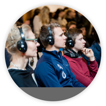 The Silent Conference System, an advanced way to conduct conferences, allows attendees to participate using wireless headphones. Featuring noise cancellation and individual control, it enables listeners to switch audio channels based on their preferences for a seamless and personalized experience.