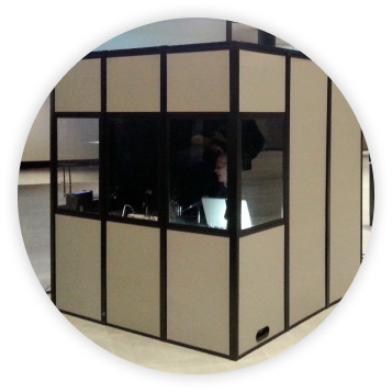 A simultaneous interpretation booth is a soundproof setup equipped with a control panel, headset, and microphone. This portable booth creates an efficient onsite workspace for conducting meetings and seminars, eliminating the hassle of storing and maintaining bulky equipment.